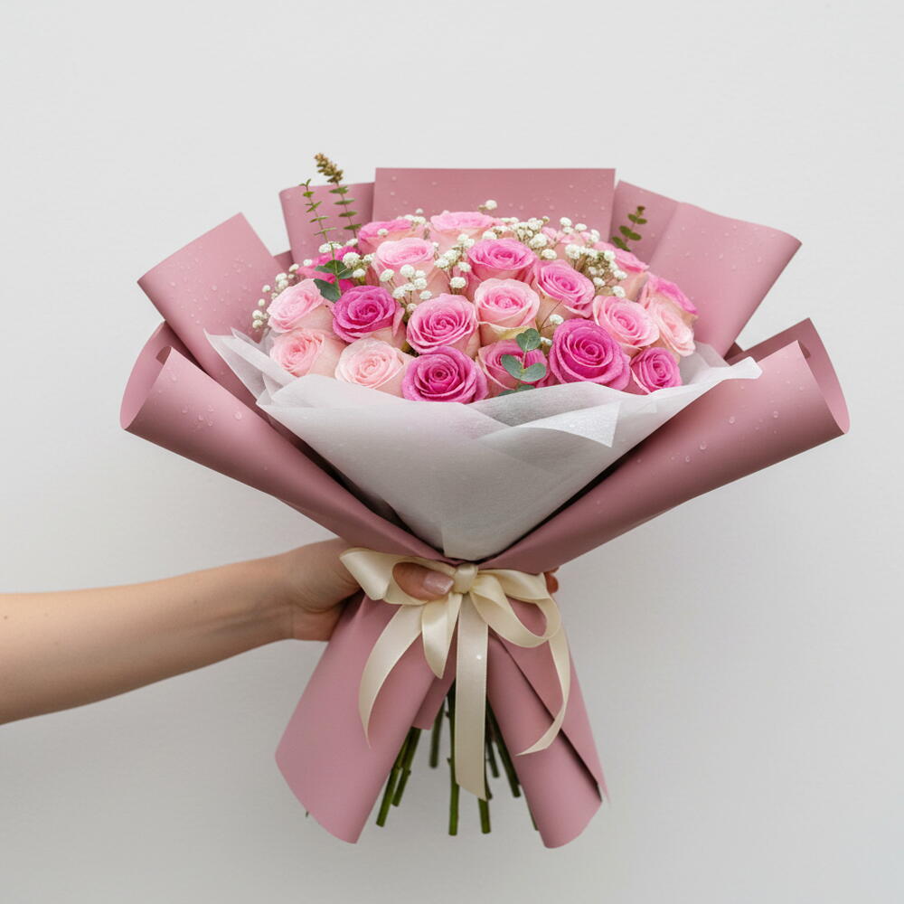 Un delicado y romántico ramo de 21 rosas rosadas con delicados gypsophila, diseñado para un regalo elegante y emotivo. BlushHarmony, un ramo atado a mano con 21 rosas rosadas premium rodeadas de delicadas gypsophila blancas (gypsophila). Cada flor aterciopelada se cosecha al amanecer para garantizar un color intenso, una fragancia y una frescura duradera. Elaborado por nuestros floristas expertos en una elegante cúpula, este ramo combina un encanto atemporal con una estética moderna. Perfecto para cumpleaños, aniversarios, despedidas de soltera o actos de amor espontáneos, este ramo ofrece elegancia para cualquier ocasión especial. De origen sostenible y empaquetado con conciencia ecológica para una experiencia lujosa y sin remordimientos. Envíe hoy mismo el ramo BlushHarmony y deje que 21 rosas y gypsophila expresen su más puro cariño, recién entregadas y elegantemente envueltas en cualquier lugar de Dubái.