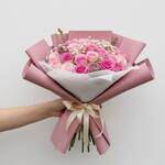 Pink rose - 21 ud. eucalyptus leaves - 3 ud. tallo de gypsophila - 3 ud.