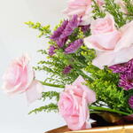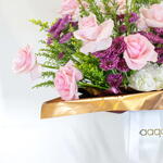 Deléitese con la lujosa belleza de la Caja Floral Soft Romance, un arreglo cautivador diseñado para deleitar e impresionar. Este opulento centro de mesa presenta un exuberante tapiz de suaves rosas rosas y delicados claveles blancos, que contrastan hermosamente con vibrantes detalles en morado oscuro y alegres claveles rosas en spray. Presentado en una elegante caja con un llamativo acabado metálico dorado, este arreglo está listo para exhibir y realza cualquier espacio al instante. Es la expresión perfecta de una sincera felicitación, un sofisticado regalo de cumpleaños o una forma impactante de decir simplemente "Te amo". Regale un momento de pura y elegante alegría. Flores destacadas: Rosas rosas premium, claveles blancos, alhelí morado/limón, claveles rosas en spray y follaje texturizado. Estilo: Arreglo en caja moderno, exuberante y discreto. Ideal para: Aniversarios, deseos de pronta recuperación, Día de la Madre o un lujoso regalo "porque sí". Cuidado de las flores para su arreglo floral en caja Riego diario: Vierta suavemente aproximadamente media taza de agua fresca y fría en el centro del arreglo todos los días o cada dos días. Vierta lenta y cuidadosamente para que la espuma floral absorba el agua. Manténgalo fresco: Coloque su arreglo en un lugar fresco, alejado de la luz solar directa, rejillas de ventilación o corrientes de aire (como el aire acondicionado). Esto evita que las flores se sequen demasiado rápido. Evite las frutas: No coloque las flores cerca de frutas maduras, especialmente plátanos, ya que liberan un gas llamado etileno que provoca que las flores se marchiten rápidamente. Elimine las flores viejas: A medida que las flores comiencen a marchitarse, córtelas con cuidado. Esto ayuda a que el arreglo se mantenga fresco y redirige el agua a las flores más sanas.