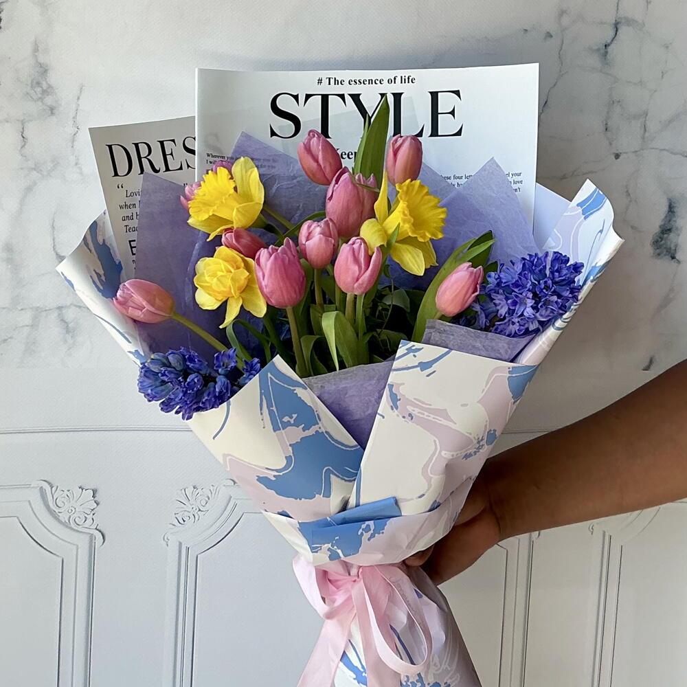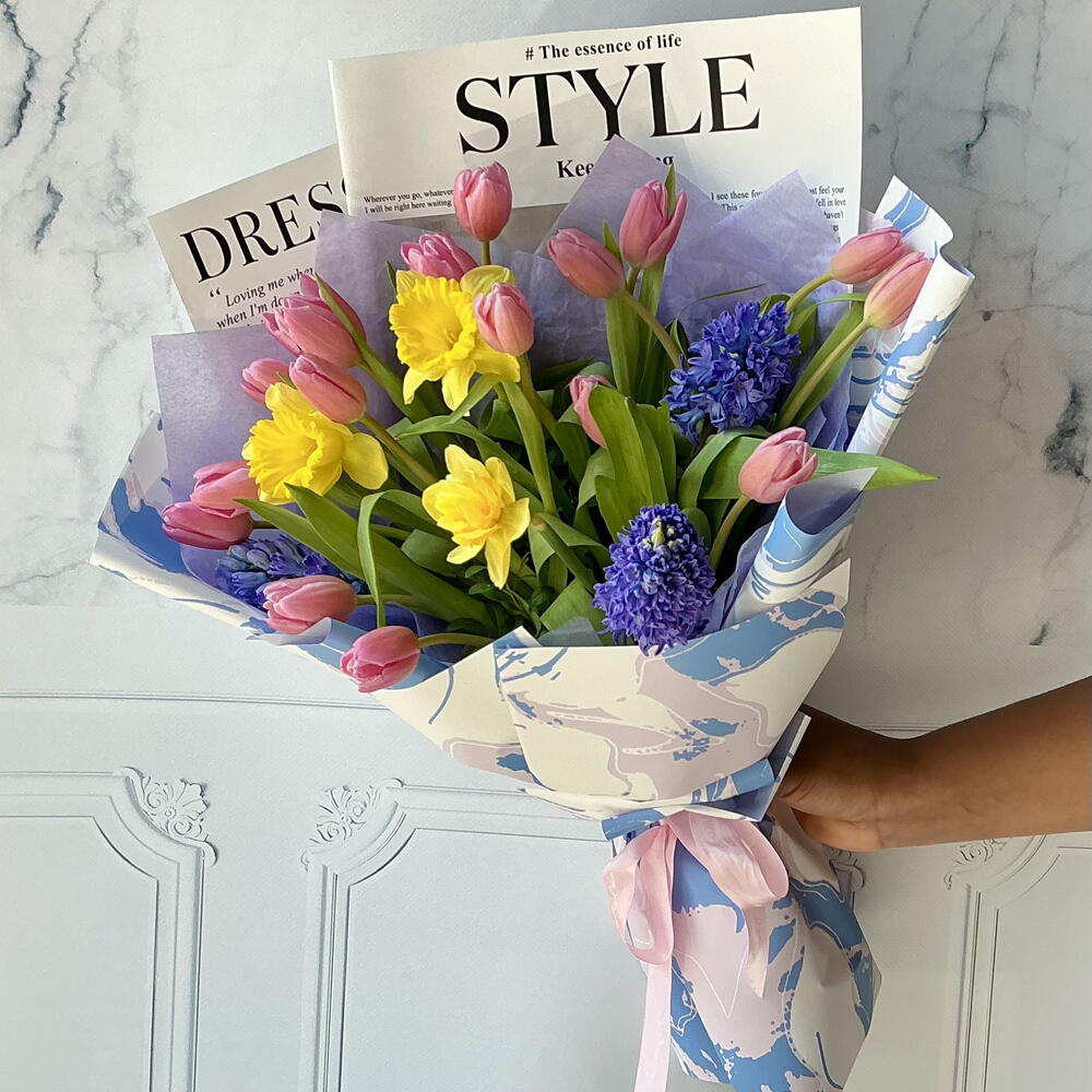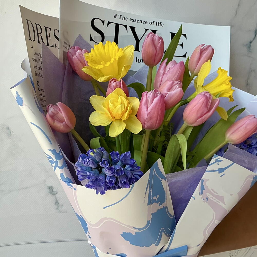 tulipán sencillo rosa ardor - 10 ud. envoltorio m - 1 ud. jacinto azul - 2 ud. narciso maestro holandés - 3 ud.