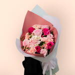 Este exquisito ramo combina una hermosa mezcla de rosas Ohara rosas, rosas fucsias y delicadas rosas en spray en Odilla, creando un arreglo vibrante y romántico. Las bayas de hipérico rosadas aportan textura y profundidad, mientras que las hortensias rosas suaves aportan un toque lujoso al arreglo. Envuelto en un elegante tono malva rosa y blanco transparente, el ramo irradia calidez, sofisticación y una sensación de suavidad. Esta impresionante combinación de flores es el regalo perfecto para expresar amor, admiración o celebración.