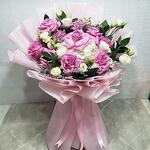 hortensia blanca - 1 ud lisianthus - 4 uds rosas rosadas - 10 uds