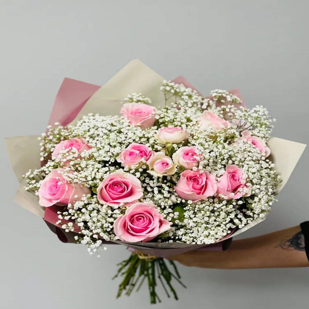 tallos de gypsophila - 4 ud. pink roses - 21 ud.