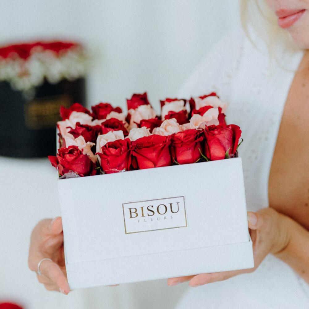 Irradia ternura con una caja de rosas de un rosa sonrojado. Suave y delicado, este arreglo es perfecto para expresar sentimientos dulces y románticos.