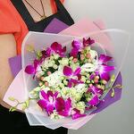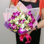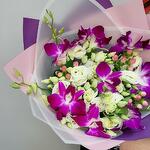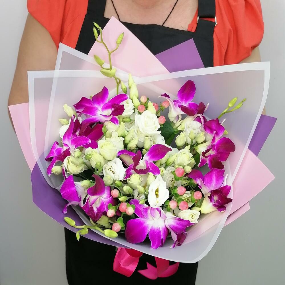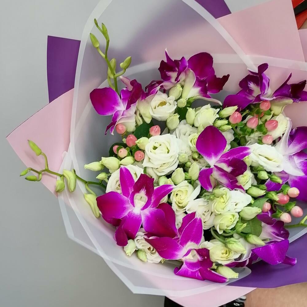 Bomb orchid with lisianthus and hypericum sprigs for your beloved one 💕
