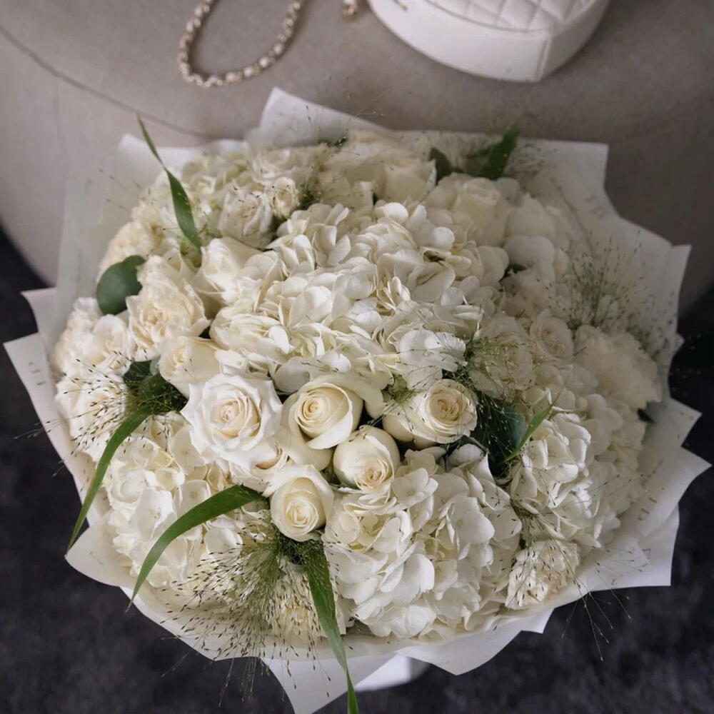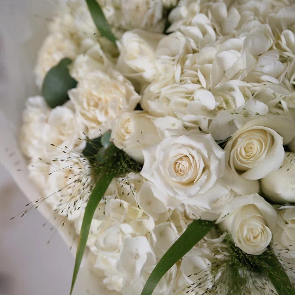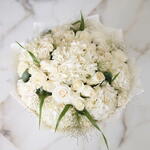 Hydrangea - 7 ud. rose - 12 ud. ramillete de rosas - 5 ud. clavel - 10 ud.