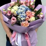 Composition: Hydrangea - 1, Skimmia - 1, Pistacia - 2, Spray Rose Julieta peach - 5, Rose white - 3, Lisianthus - 5, Wrapping Paper - 1, RIBBON - 1 Sizes: WIDTH - 40CM; HEIGHT - 55CM; LENGTH - 55CM; (including packaging) Размер: 40 x 55 x 55 см