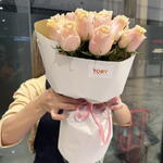 Composition: rose Peach - 15, Wrapped - 1, Ribbon - 1 Sizes: WIDTH - 20CM; HEIGHT - 60CM; LENGTH - 60CM; (including packaging) Размер: 20 x 60 x 60 см