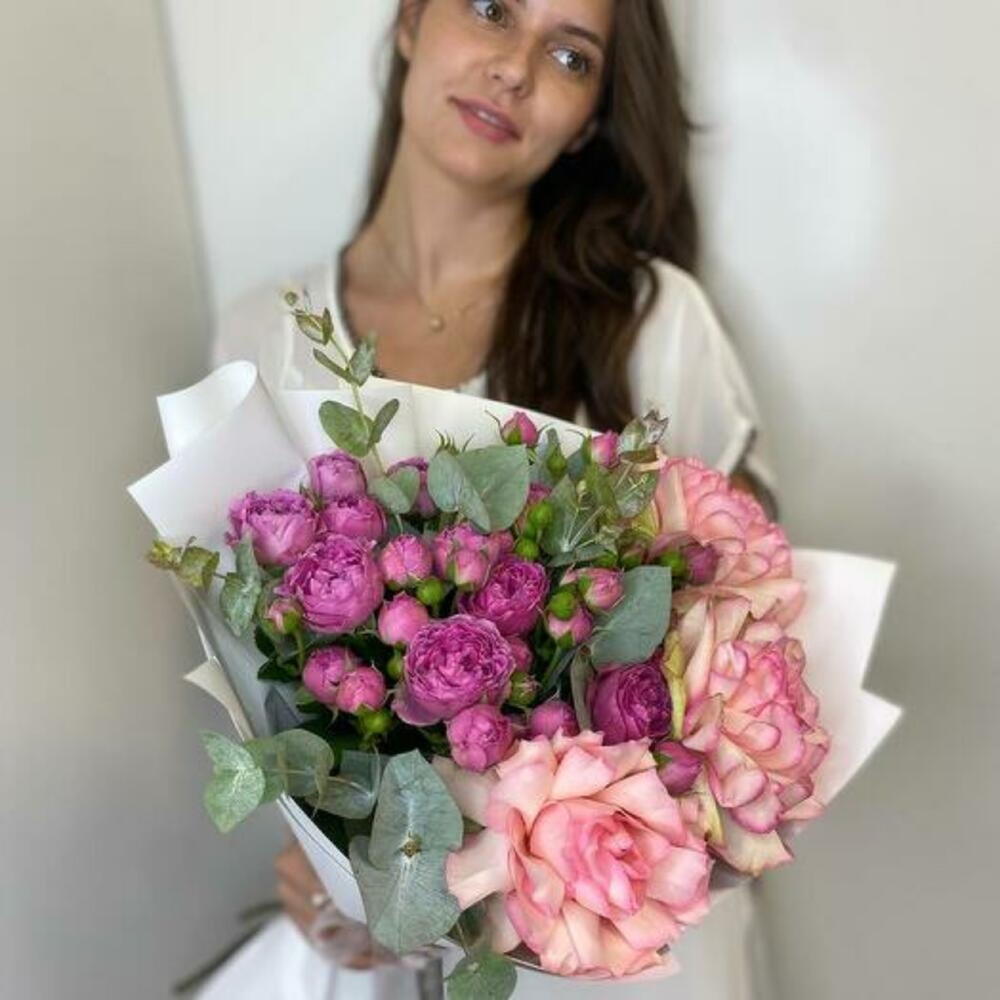 Ramo de rosas rosas francesas y rosas spray peonía - 1995