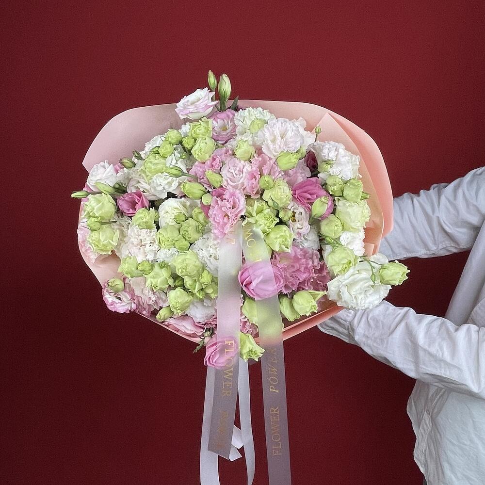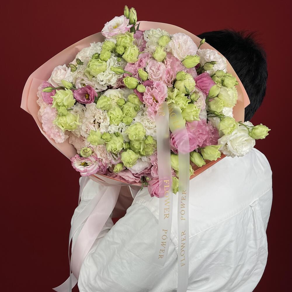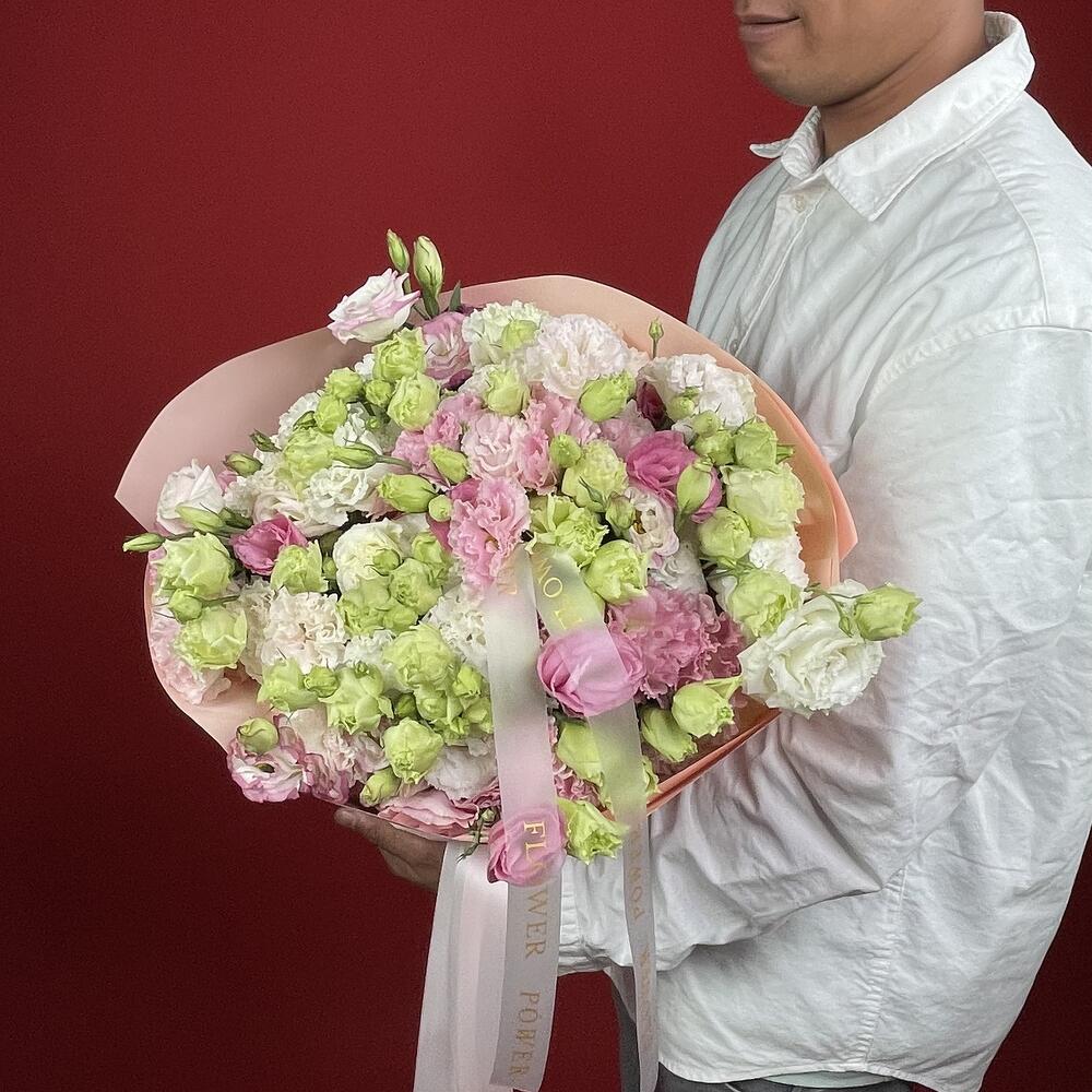 Un encantador y mágico Paseo Pastel te espera con este generoso ramo de eustomas multicolor en suaves tonos rosa, verde y blanco. Estas delicadas flores expresan a la perfección alegría, admiración y sinceridad, creando un ambiente suave y onírico. Es una opción maravillosa para cumpleaños, para dar las gracias, para celebrar la llegada de un bebé o simplemente para alegrar cualquier día.