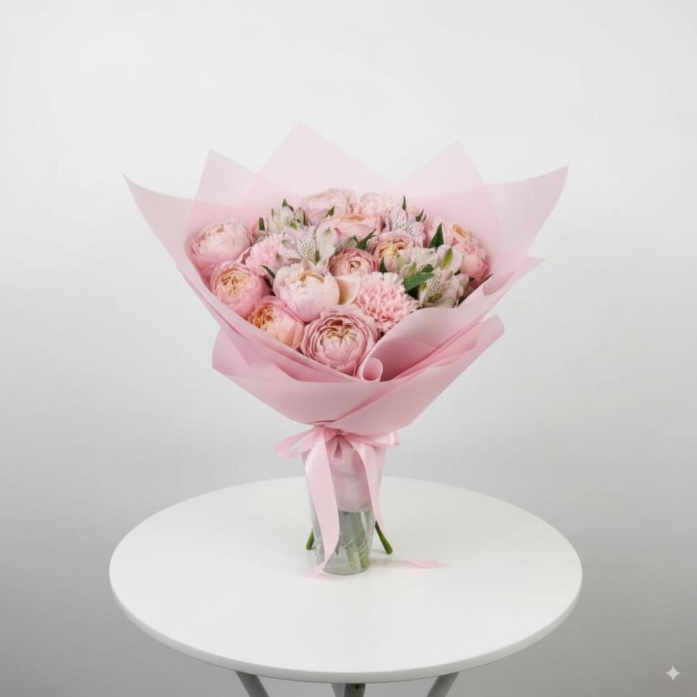 filtro - 3 ud. rosas spray juliet - 5 ud. alstroemeria rosa claro - 4 ud.