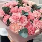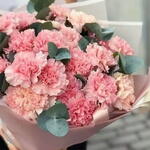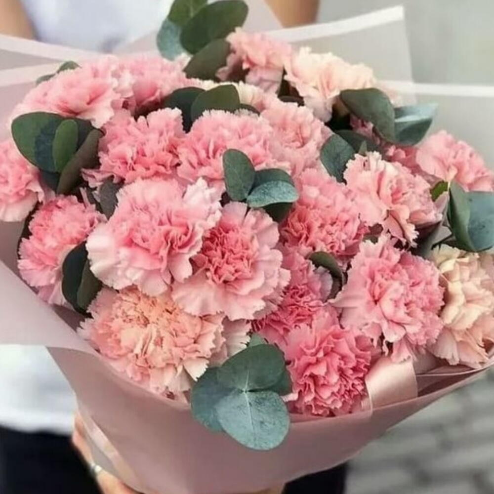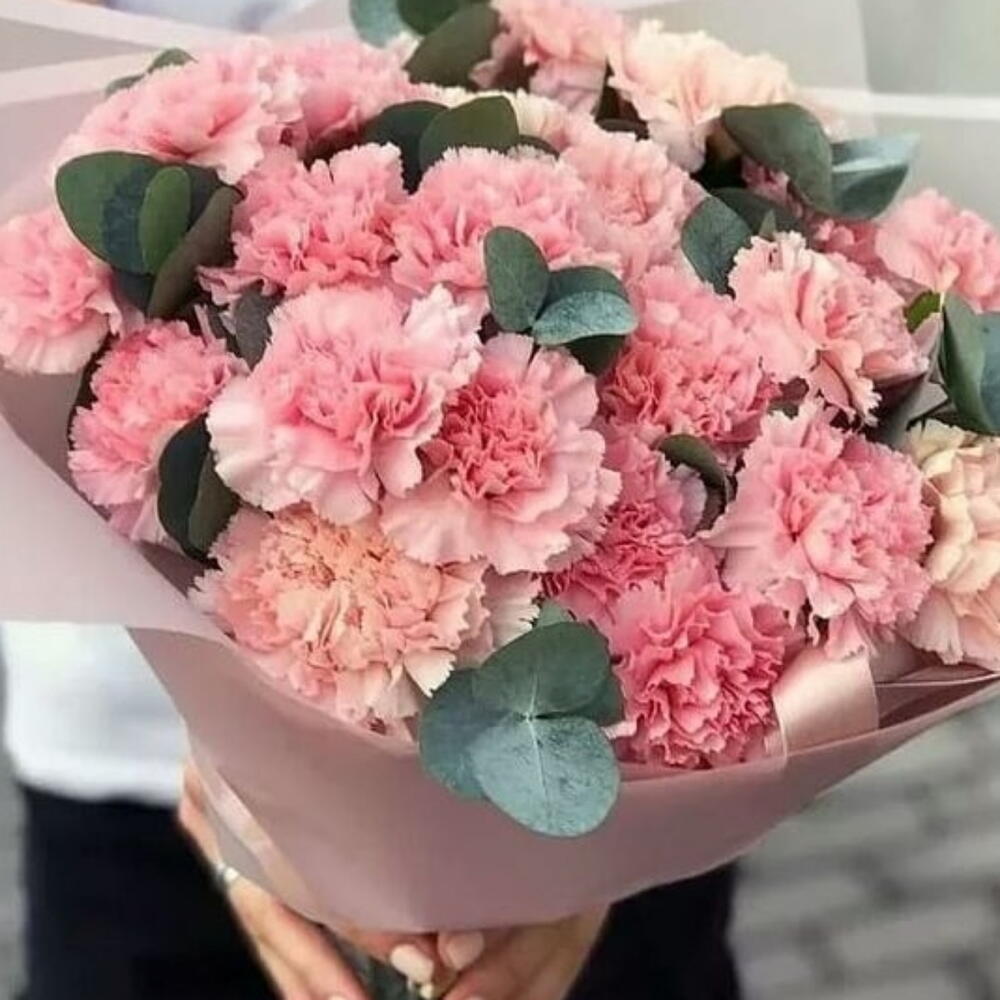 postal - 1 ud. mezcla de claveles - 21 ud. wrapping paper - 2 ud. eukalyptus - 5 ud. instrucción - 1 ud. cinta - 1 ud. krizal (alimentación) - 1 ud.