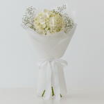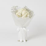 Una mezcla perfecta de elegancia y encanto, este ramo presenta la belleza única de la hortensia combinada con la delicada gracia de la gypsophila. Atado a mano por expertos y presentado en un encantador envoltorio blanco, el arreglo desprende frescura, pureza y una sofisticación atemporal — un regalo ideal para celebraciones especiales o simplemente para alegrar el día de alguien.