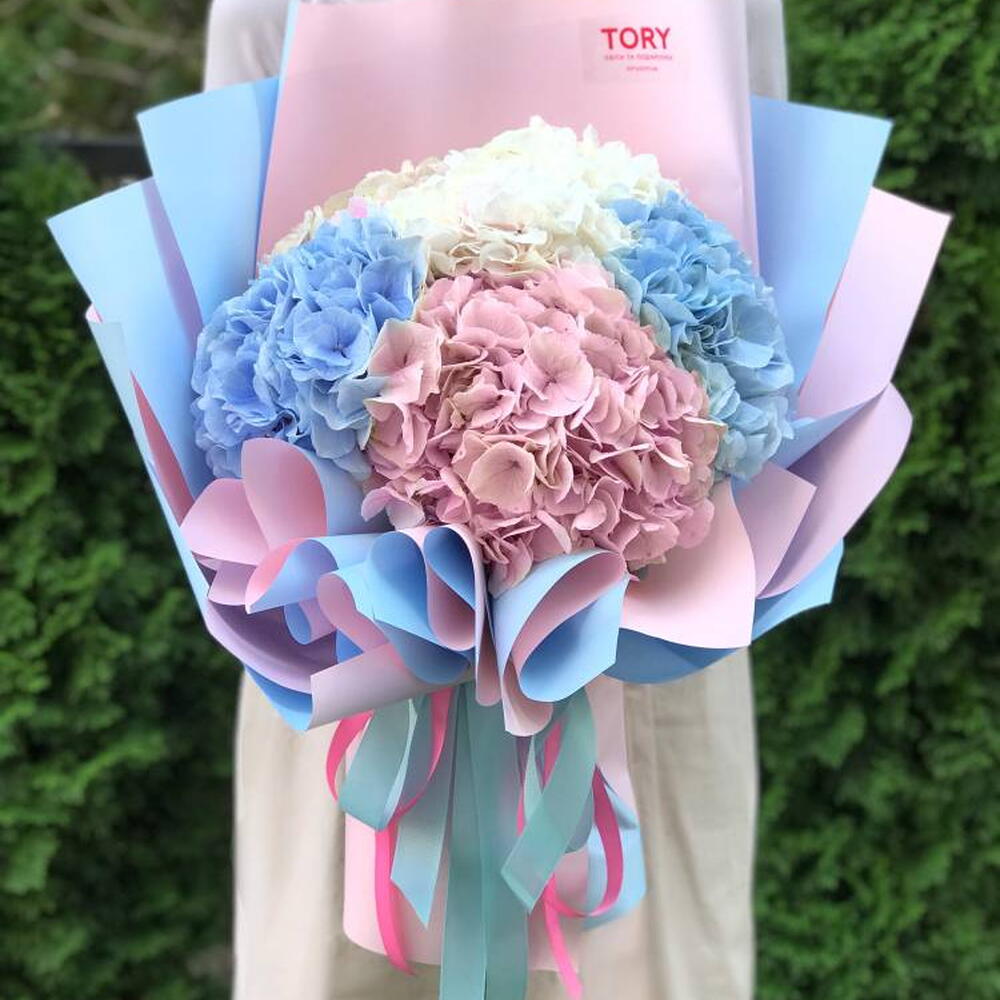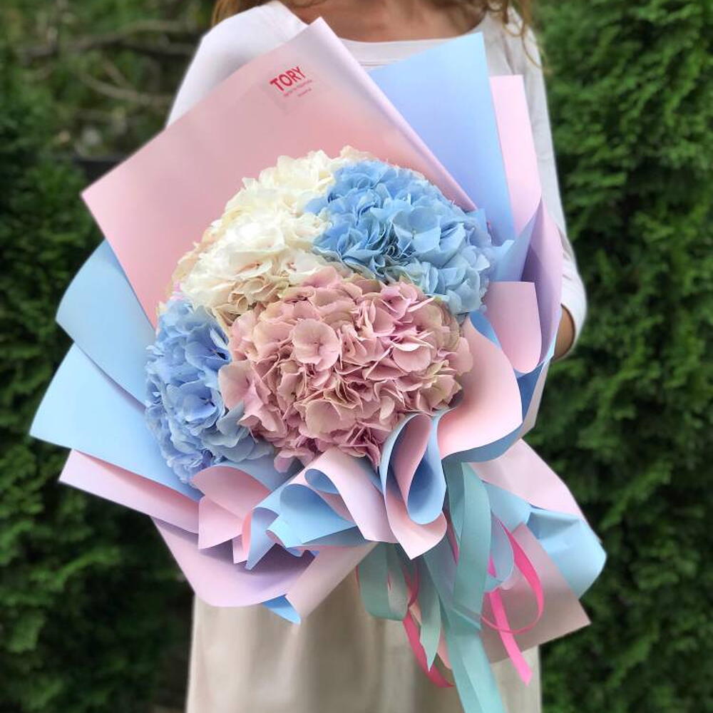 Composición: Hortensia - 5, Envoltorio - 5, Cinta - 3 Dimensiones: ANCHO - 50CM; ALTURA - 50CM; LARGO - 50CM; (incluye embalaje) Tamaño: 50 x 50 x 50 CM