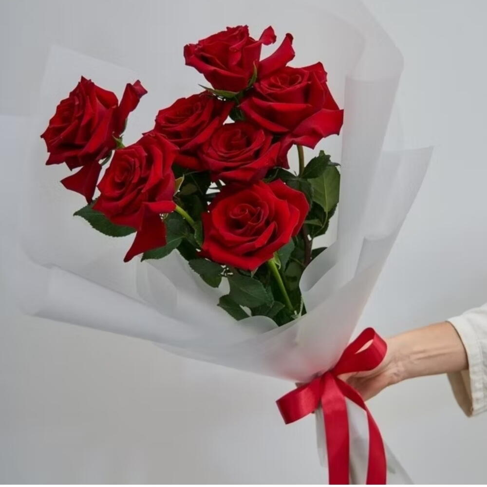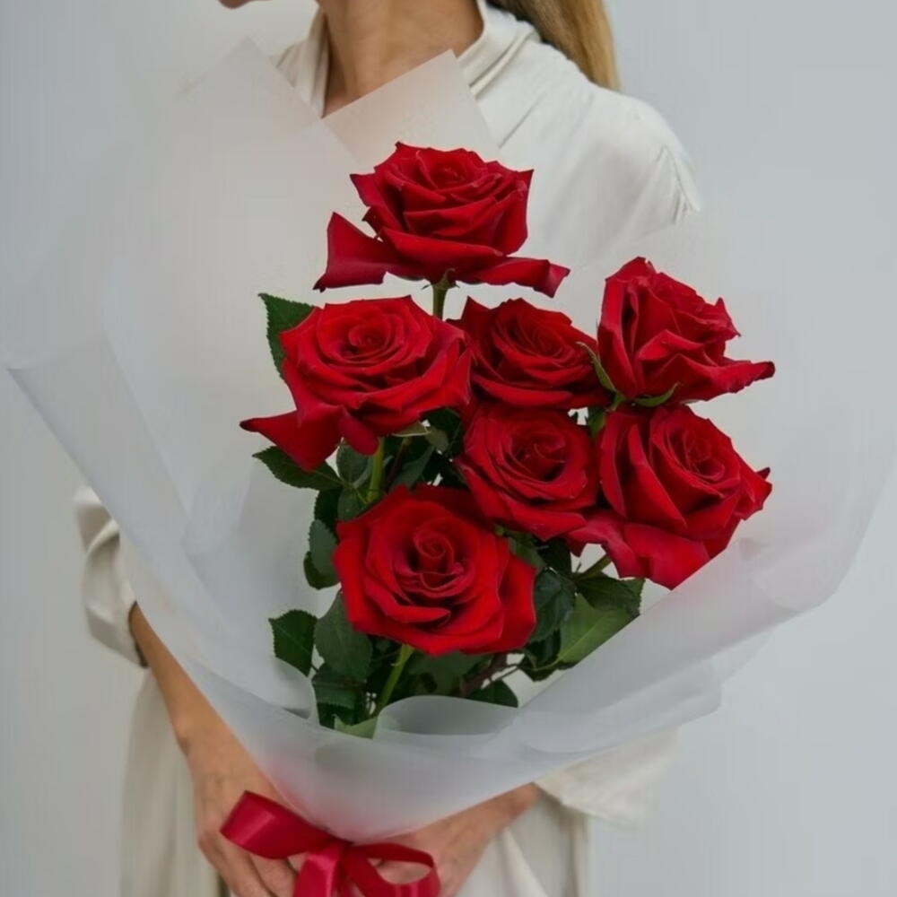 Ramo encantador de 7 rosas rojas