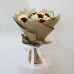 Red rose - 15 ud. White rose - 15 ud. gipsofila blanca - 5 ud. papel de regalo marrón - 5 ud.