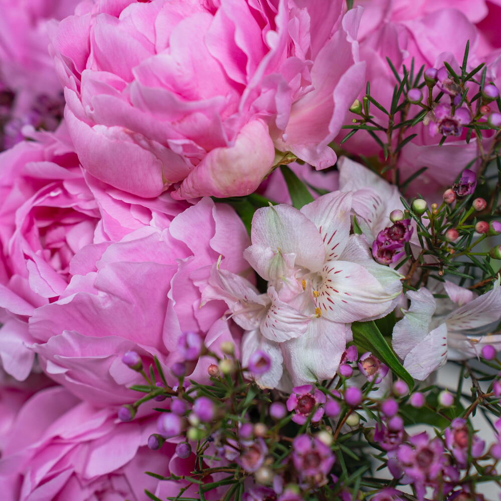 Alstroemeria - 7 ud. Peony pink - 20 ud. cera rosa - 5 ud.