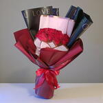 Un impresionante arreglo de rosas rojas de primera calidad envueltas en elegante papel de lujo con una elegante cinta: el regalo romántico perfecto para expresar amor profundo, pasión y emociones sinceras.