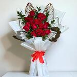 El ramo Crimson Romance es el símbolo definitivo del amor eterno y la pasión. Este impresionante arreglo cuenta con 20 rosas rojas aterciopeladas, seleccionadas a mano por sus exuberantes flores y su intenso color, elegantemente combinadas con 5 ramitas de ruscus fresco para un toque de verdor natural. Envuelto en papel de diseñador elegante y atado con una audaz cinta roja, este ramo hace una declaración poderosa de afecto y devoción. Elaborado a la perfección, este ramo de rosas rojas es una opción clásica para aniversarios, el Día de San Valentín, cumpleaños o simplemente para sorprender a alguien especial. Las vibrantes rosas rojas personifican el amor profundo y el romance, mientras que las hojas brillantes de ruscus realzan el arreglo con frescura y equilibrio. Envuuelto con estilo, es un regalo que dice más que las palabras. Instrucciones de cuidado: Para una belleza de mayor duración, coloque el ramo en un jarrón limpio con agua fresca y fría inmediatamente después de desenvolverlo. Renueve el agua cada dos días y recorte los tallos en diagonal para asegurar una hidratación óptima. Mantenga el ramo en un ambiente fresco, alejado de la luz solar directa, corrientes de aire y frutas en maduración. Con el cuidado adecuado, sus rosas se mantendrán frescas y radiantes durante días.