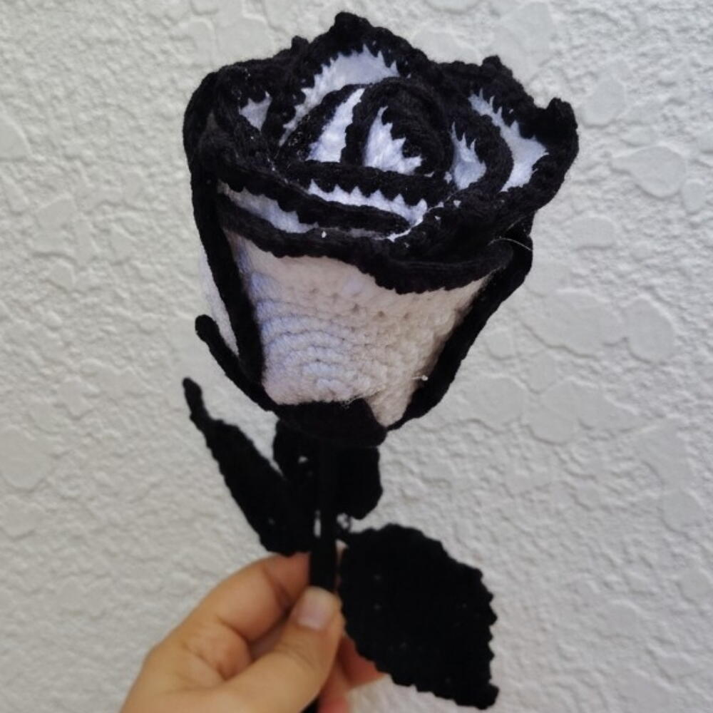 Regala algo que durará toda la vida. Esta impresionante rosa de crochet artesanal presenta un atrevido diseño monocromático que combina nítidos pétalos blancos con un espectacular borde negro. A diferencia de las flores naturales, esta flor nunca se marchitará, sirviendo como un recordatorio permanente de tu cariño o un elegante complemento para la decoración de cualquier hogar. Características destacadas del producto: Calidad artesanal: Meticulosamente tejida a mano con hilo suave de alta calidad. Diseño único: El llamativo borde en blanco y negro le da un aspecto moderno y artístico que se adapta a la estética minimalista, monocromática o gótica. Decoración versátil: Perfecta para mesitas de noche, escritorios o como un accesorio único para el coche. Ecológica y sostenible: Una alternativa ecológica a las flores recién cortadas que reduce los residuos.
