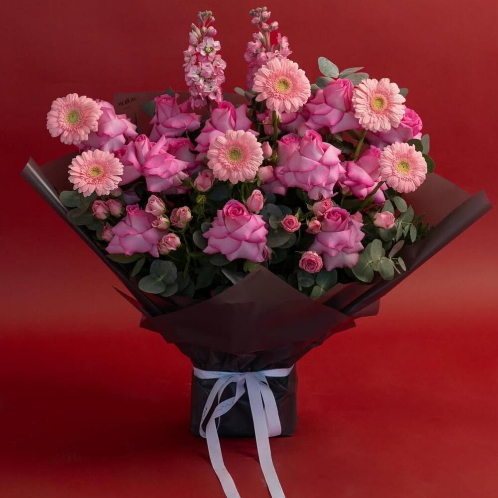 Desata tu femme fatale interior con el ramo Dangerous Women — una impresionante mezcla de rosas rosa pálido, delicadas rosas spray, alegres margaritas y elegantes bocas de dragón. Acentuado con eucalipto fresco, este ramo equilibra la confianza audaz con la feminidad atemporal. Perfecto para quienes acaparan la atención, celebran logros o simplemente se entregan al amor propio. Una declaración floral chic e icónica para la mujer moderna.
