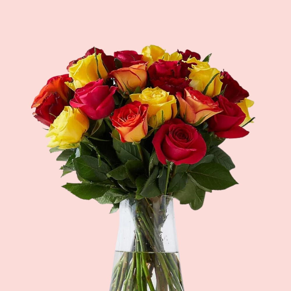 Yellow rose - 5 ud. orange rose - 5 ud. red roses - 10 ud.
