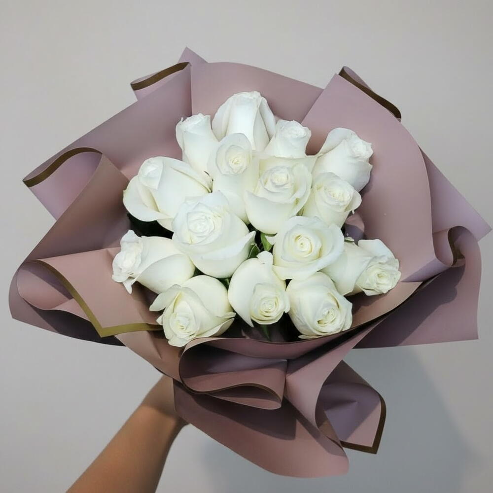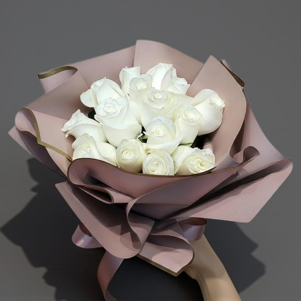 Una visión de pureza y elegancia, este impresionante ramo de rosas blancas es una expresión perfecta de amor, nuevos comienzos y belleza atemporal. Envuelto en papel de tonos pastel suaves con bordes dorados, desprende un aire de sofisticación y gracia. Ya sea como regalo para bodas, aniversarios o un gesto romántico sincero, este ramo hace una declaración deslumbrante. Corta los tallos en diagonal y colócalos en un jarrón con agua limpia y fresca. Cambia el agua cada dos días y mantén el ramo alejado de la luz solar directa y del calor. Rocía ligeramente los pétalos para mantener su frescura. ¡Disfruta de su belleza natural durante el mayor tiempo posible!