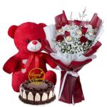 *¡Celebra este Diwali con un regalo lleno de dulzura, amor y brillo!* Esta combinación festiva incluye un lujoso ramo de rosas rojas, bombones Ferrero Rocher y gitanos envueltos en elegante papel blanco rojo, acompañados de un adorable osito de peluche y un delicioso pastel de chocolate. Perfecto para iluminar el Diwali de tus seres queridos con alegría y calidez. *Celebra el Festival de las Luces con nuestros ramos artesanales de Diwali: una radiante mezcla de flores vibrantes como cempasúchiles, rosas y lirios, que simbolizan la prosperidad, el amor y los nuevos comienzos. Envueltos en elegancia y festividad, cada ramo está diseñado para iluminar tu hogar y tu corazón esta temporada. Perfectos para regalar o decorar, estas bellezas florales aportan alegría, calidez y bendiciones a cualquier espacio.