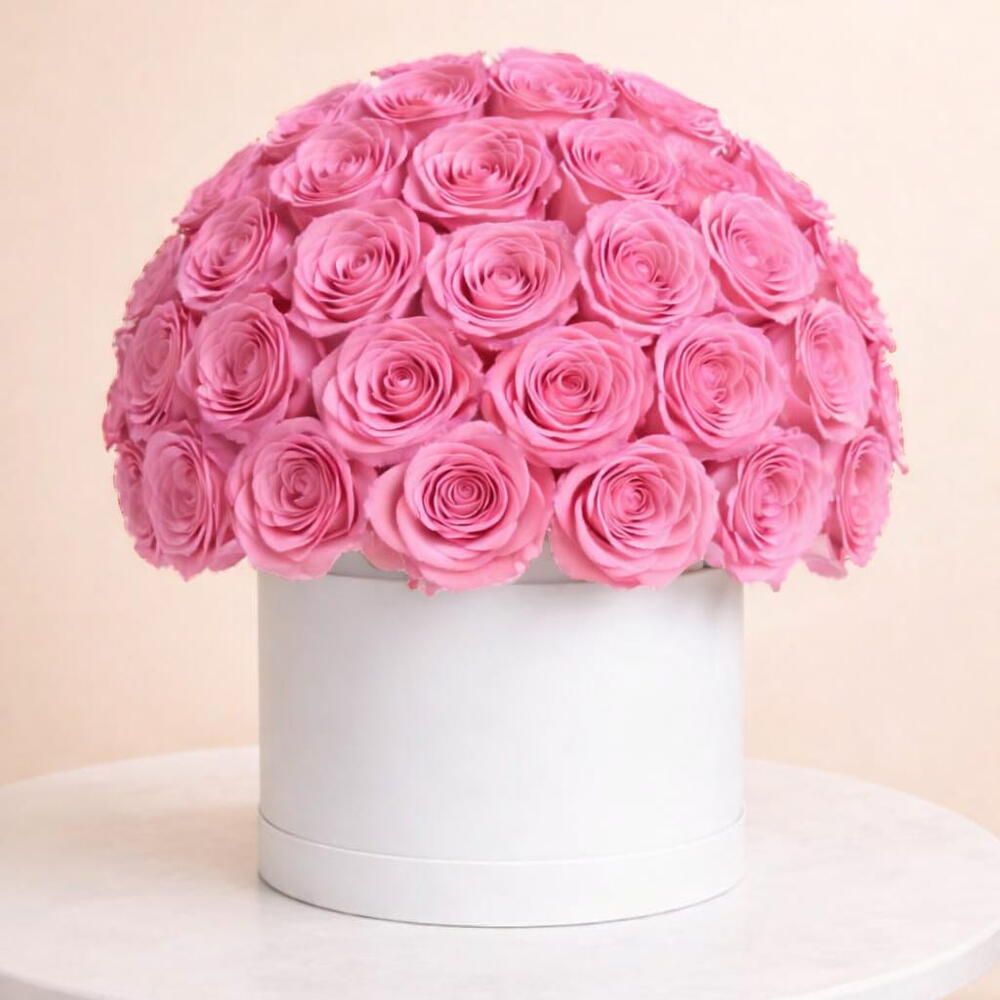 Añade un toque de lujo a tu ocasión con este exquisito centro de mesa. Este impresionante arreglo floral, bellamente presentado en una elegante caja sombrerera blanca, cuenta con 60 encantadoras piezas de Rose Revival, ofreciendo un opulento espectáculo de elegancia. Regala a tus seres queridos este capricho memorable o decora tu espacio con esta caja; seguro dejará una impresión duradera.