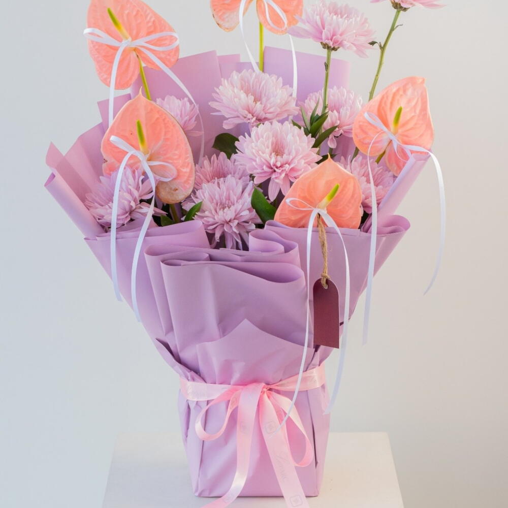 Dream es una sofisticada celebración de elegancia, textura y arte floral moderno. Con 10 grandes y exuberantes crisantemos morados combinados con exóticos anturios, cada flor está adornada con delicados lacitos blancos y seleccionada a mano para lograr vitalidad, frescura y pétalos impecables. Envuelto en lujoso papel morado, este arreglo irradia estilo refinado, encanto contemporáneo y un encanto propio de la alta costura. Perfecto para tu novia, esposa, prometida o esa mujer que llena de vida y color cualquier habitación, Dream es ideal para cumpleaños, aniversarios, felicitaciones o simplemente para dar un toque de elegancia y audacia. Cada flor transmite sofisticación, admiración y un lujo exquisito, convirtiendo este ramo en una obra maestra floral digna de coleccionista. Envíalo de parte de tu pareja, esposo o admirador para expresar lujo, elegancia y un sentimiento sincero. Un sueño no son solo flores: es un ramo poético, perfecto para Instagram, que capta la atención. Disponible con entrega el mismo día en Dubái y en todos los Emiratos Árabes Unidos. ✨ Sueña, porque cada momento merece florecer con elegancia púrpura.