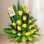 Cesta especial para Pascua con rosas amarillas rellenos hojas