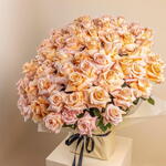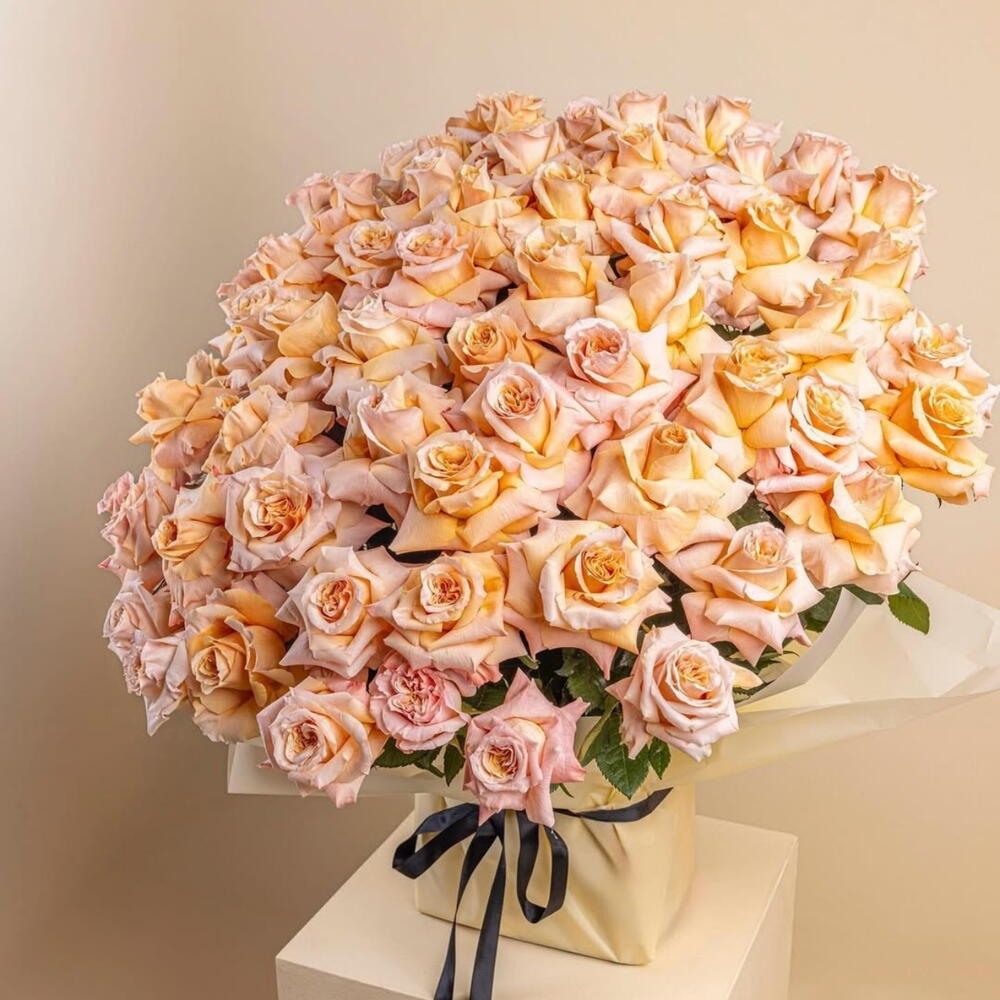 Audaz, radiante e intemporal — Egipto es un tributo al resplandor dorado de los atardeceres antiguos y a los horizontes del desierto. Elaborado con 101 rosas en tonos melocotón y naranja, este ramo transmite la calidez de las noches en El Cairo y la riqueza de la opulencia de la época de los faraones. Perfecto para gestos grandiosos, celebraciones, aniversarios y para quien merezca un ramo con verdadero poder y presencia.