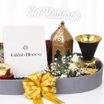 Celebra la alegría del Eid con la Cesta de regalo premium Eid Serenity, una colección refinada diseñada para reflejar elegancia, tradición y regalos pensados. Este conjunto bellamente curado incluye 100 g de dragees premium en una bolsita exclusiva de FaVish Blooms, un tapete de oración, tasbih, quemador de bakhoor con bakhoor, linterna decorativa y un delicado mini ramo de flores, rematado con un adorno “Eid Mubarak”. Todos los elementos están elegantemente dispuestos en una sofisticada bandeja de cuero con un lujoso lazo de cinta dorada en forma de flor, creando un regalo de Eid atemporal. Perfecto para: • regalos para anfitriones de Eid • regalos corporativos por Eid • Familia y seres queridos • regalos para la decoración del majlis Un regalo significativo para Eid — bellamente presentado al estilo FaVish.