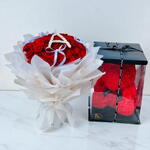 rosa roja 50 y osito de espuma rojo 40cm letra floral (personalizable, cualquier letra) y una tarjeta de felicitación gratis
