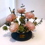 Presentamos la Elegante Caja Floral de Crisantemos Rosas, un refinado arreglo de mesa con delicados crisantemos rosados combinados con exóticos cardos y ramitas de eucalipto fresco. Diseñada con una lujosa base de cerámica negra, esta moderna pieza floral es perfecta para una decoración elegante del hogar, entornos profesionales o un regalo especial. Con una estética minimalista pero sofisticada, combina textura, tono y elegancia natural en un ramo cuidadosamente seleccionado. Instrucciones de cuidado: Mantenga el arreglo en un lugar fresco y sombreado, alejado de la luz solar directa y del aire acondicionado. Rocíe ligeramente las flores a diario para mantener su frescura y revise el nivel de agua dentro de la espuma floral cada 1 o 2 días. Rellene con agua limpia según sea necesario para mantener los tallos hidratados y la composición vibrante.