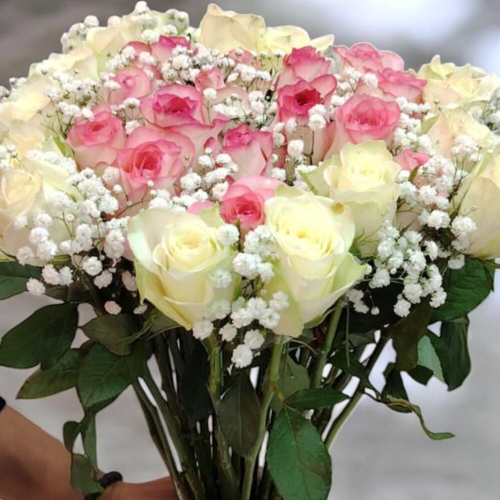 Ramo Elegante de Rosas Rosadas y Blancas
