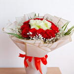 Red rose - 18 ud. White rose - 7 ud. envoltorio rosa claro - 1 ud. gipsipillia - 6 ud.