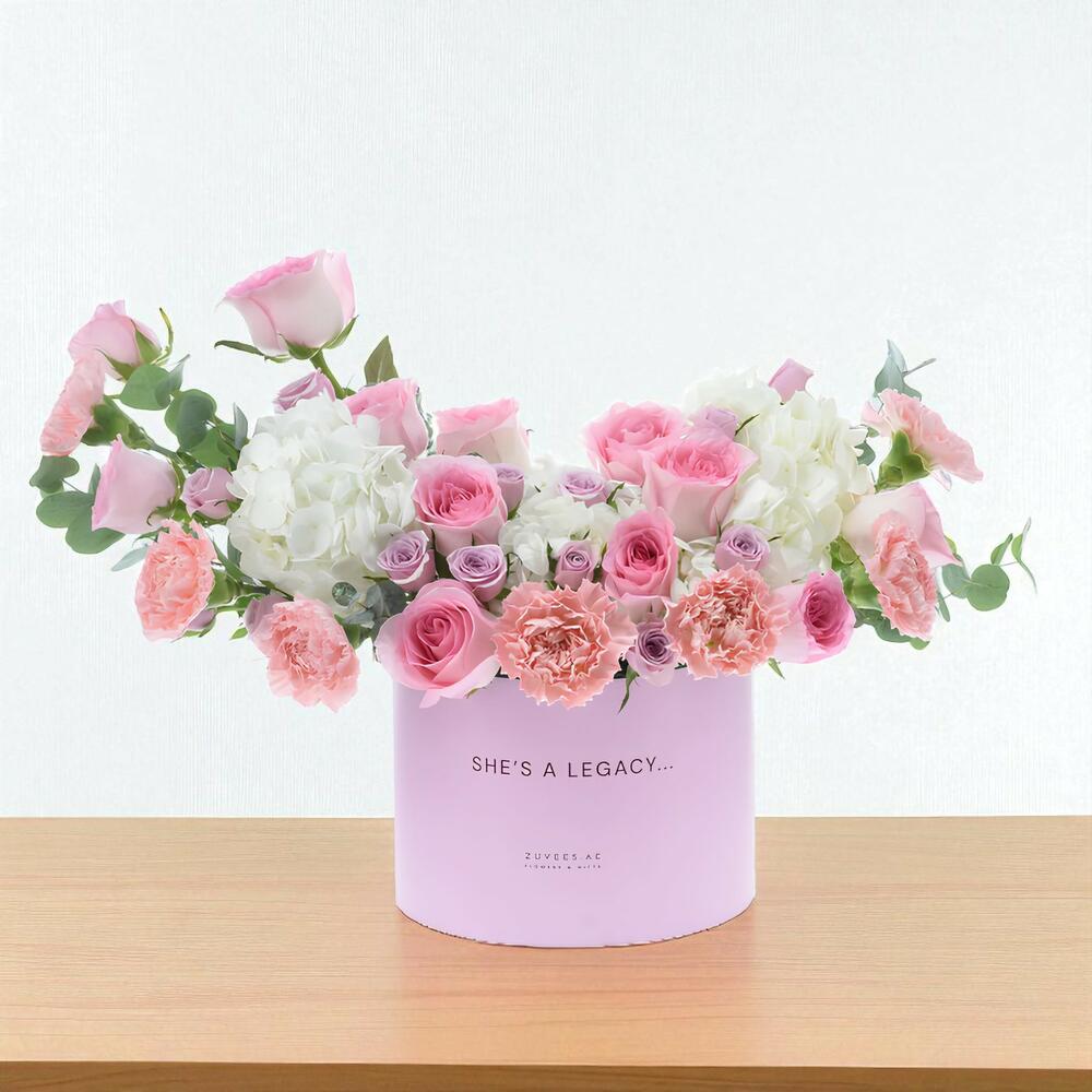Celebra la gracia, la fortaleza interior y la belleza atemporal con la Elysian Bloom Legacy Box. Esta obra maestra floral combina suaves tonos pastel con texturas cautivadoras—cada flor cuidadosamente seleccionada para honrar la elegancia y la influencia de las mujeres que dan forma a nuestro mundo. Es más que un regalo—es un homenaje en pétalos.
