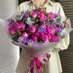 Sumérgete en la cautivadora belleza de nuestro ramo encantador de rosas rosa y matthiola. Esta deslumbrante composición presenta los ricos y aterciopelados pétalos de rosas de jardín de un rosa intenso, elegantemente combinados con la delicada y fragante matthiola violeta. Perfecto para añadir un toque de romanticismo y sofisticación a cualquier ocasión, este ramo es una verdadera expresión de gracia y encanto. Ideal para celebraciones, aniversarios o simplemente para alegrar el día a alguien, sus colores vibrantes y su exquisito aroma dejarán una impresión duradera.