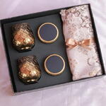 Celebra la serenidad y el espíritu del Ramadán con este arreglo en bandeja abierta cuidadosamente seleccionado, diseñado para combinar espiritualidad, tradición y un refinado sentido de indulgencia. Presentado en una elegante bandeja abierta, este set incluye un tapete de oración con cuentas de oración colocadas ordenadamente en una bolsita, simbolizando la reflexión y la devoción durante el mes sagrado. Portavelas de cristal decorativos para Ramadán añaden un cálido resplandor ambiental, mientras que tarros troquelados llenos de dátiles clásicos y una selección premium de mezcla energética completan el arreglo. Equilibrado y refinado, este set de regalo es una opción significativa para regalar en Ramadán.