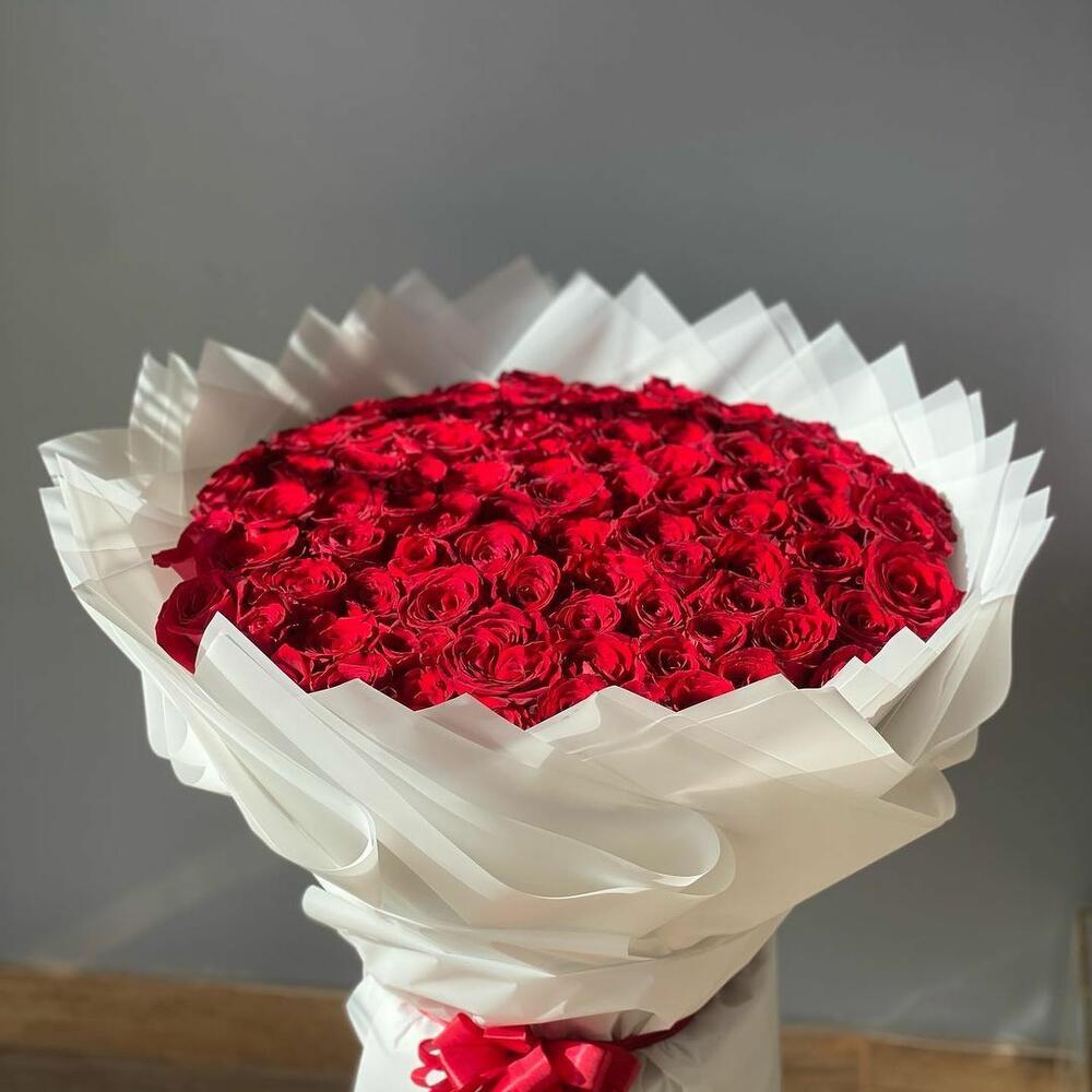 Ramo de 201 rosas rojas Ever y papel de envoltura blanco roto en bonito ramo