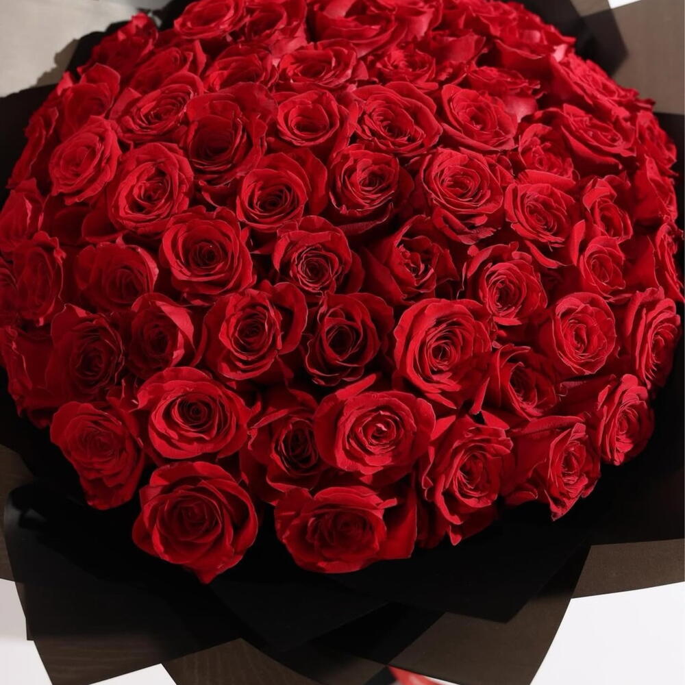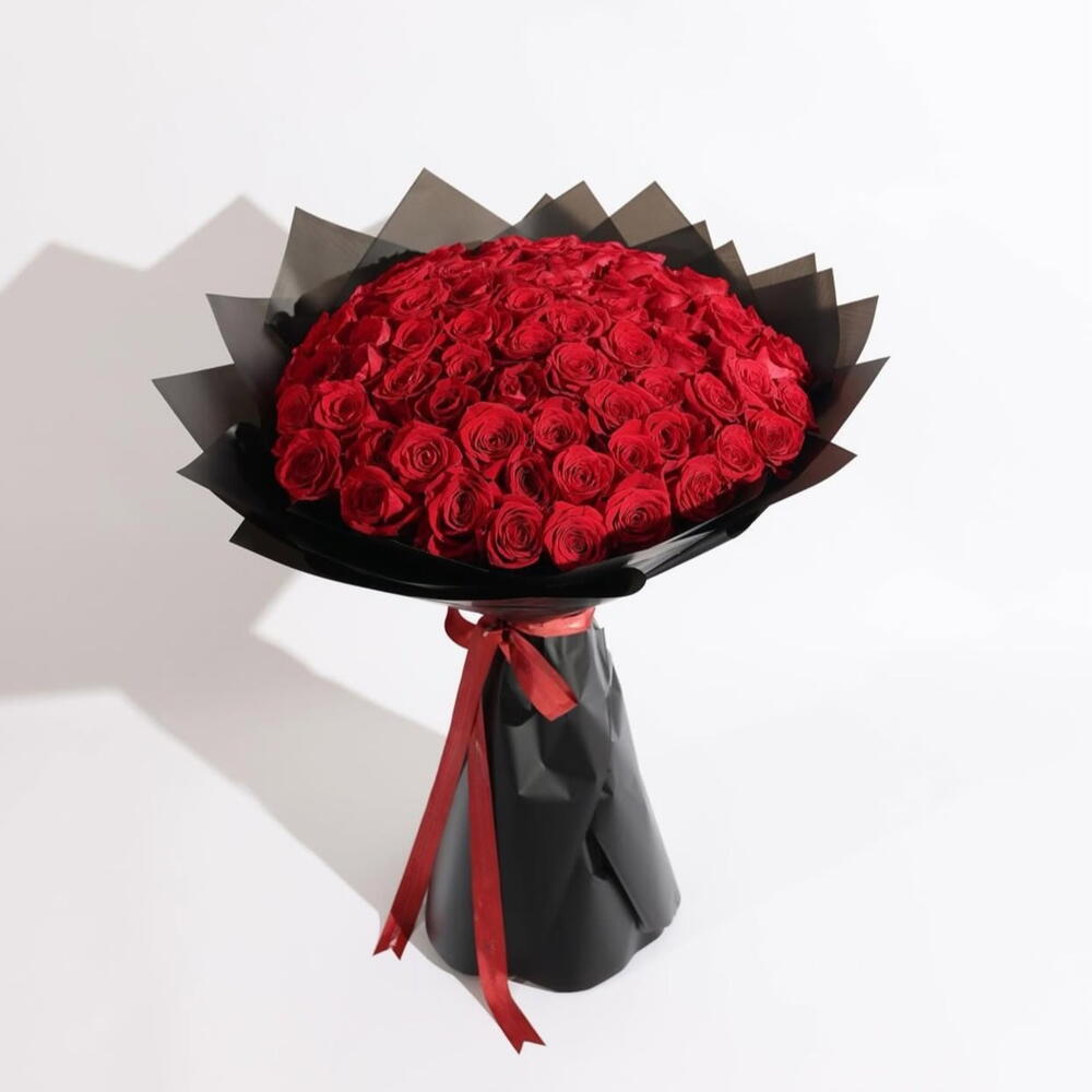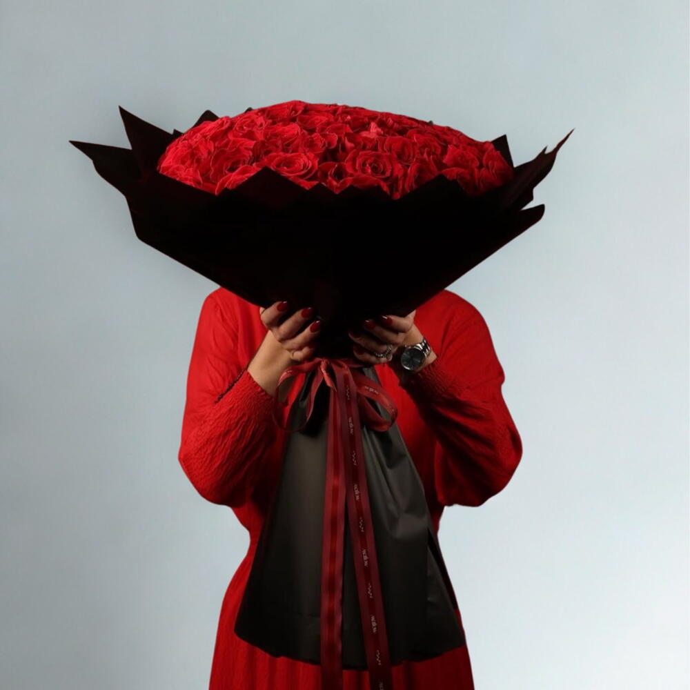 Evermore es una declaración de pasión, amor y elegancia atemporal. Con 99 exuberantes rosas rojas abiertas, cada flor está cuidadosamente dispuesta en una lujosa envoltura negra y atada con una larga y dramática cinta roja, creando una impresión visual audaz e inolvidable. Este gran ramo de rosas rojas está diseñado para quienes desean expresar emociones profundas con grandeza y estilo. Perfecto para ella, para él o para cualquier persona que ames profundamente, Evermore captura la intensidad del amor romántico, la pasión y la devoción. Ya sea un aniversario, una propuesta de matrimonio, un regalo para el Día de San Valentín o un gran gesto romántico, este lujoso arreglo de rosas rojas transmite lo que las palabras a menudo no pueden expresar. Cada rosa se selecciona por su frescura, tamaño y perfecta apertura, convirtiéndolo en un ramo premium que combina belleza, artesanía y emoción. Envíalo de parte de un amante, un cónyuge, un prometido o un amigo para celebrar el amor, la admiración o la gratitud. El ramo Evermore es más que flores: es un regalo poético, una declaración de afecto y una obra maestra floral lujosa. Perfecto para regalar, para la decoración del hogar o para eventos de lujo, es una creación emblemática de Majd Flowers Dubai, conocida por ramos artesanales premium con entrega de flores el mismo día en Dubái y en todo los Emiratos Árabes Unidos. Experimenta la intensidad de 99 rosas rojas, la elegancia de una envoltura negra y el dramatismo de una larga cinta roja: todo en un inolvidable ramo Evermore.