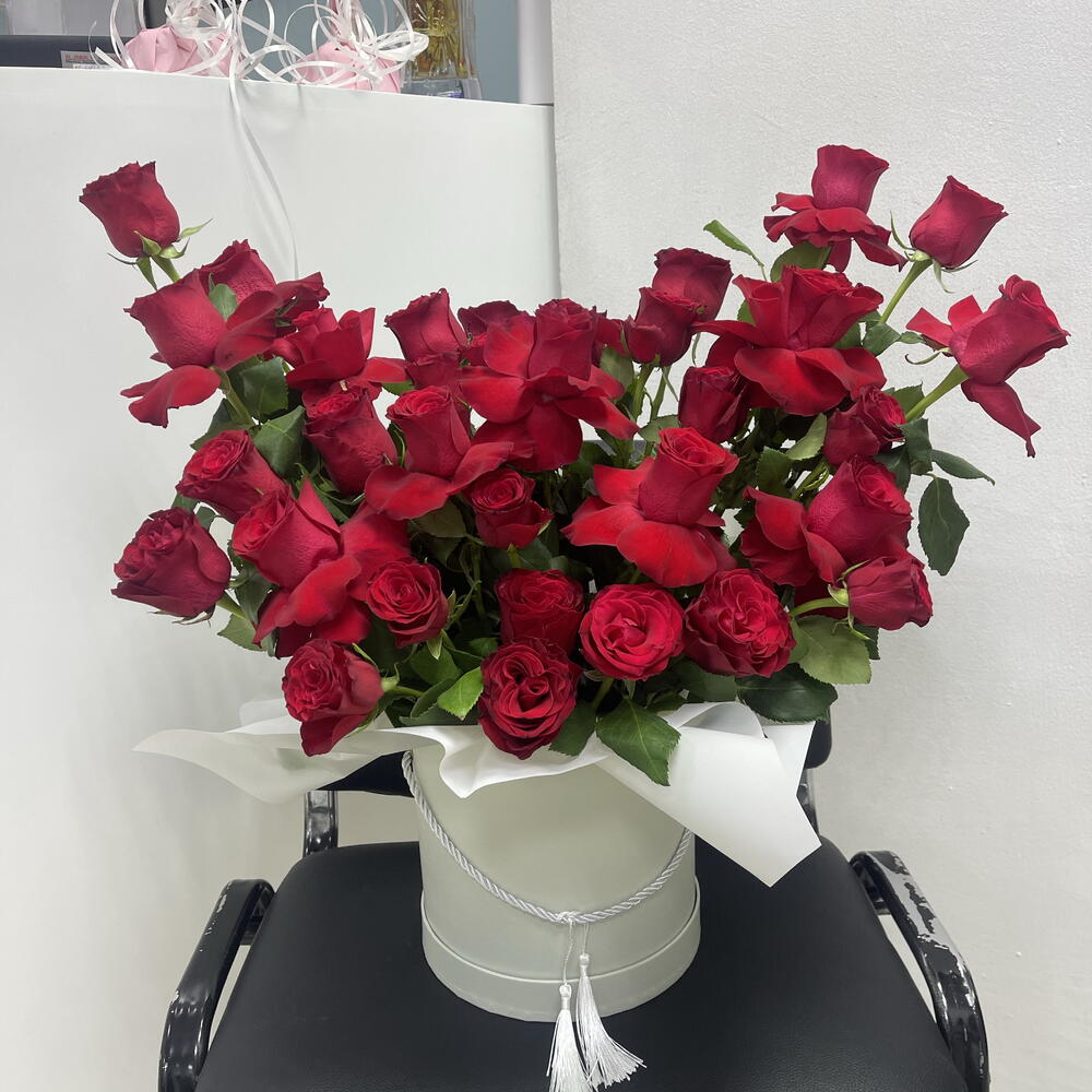 Revela el encanto atemporal de 41 exquisitas rosas rojas meticulosamente dispuestas en una caja elegante. La declaración perfecta de amor y admiración, estas vibrantes flores irradian un encanto perdurable que cautiva los sentidos. Enfatizando la riqueza y la profundidad, este impresionante conjunto de rosas rojas es un regalo que quita el aliento, simbolizando la pasión ardiente y el afecto implacable que sientes por esa persona especial. Transforma cualquier ocasión en un gran espectáculo de romance con esta lujosa caja de flores.