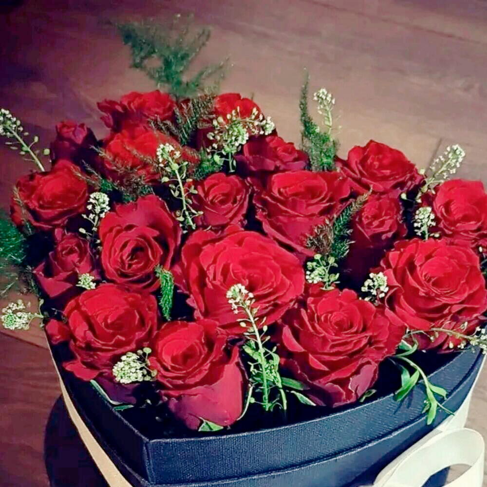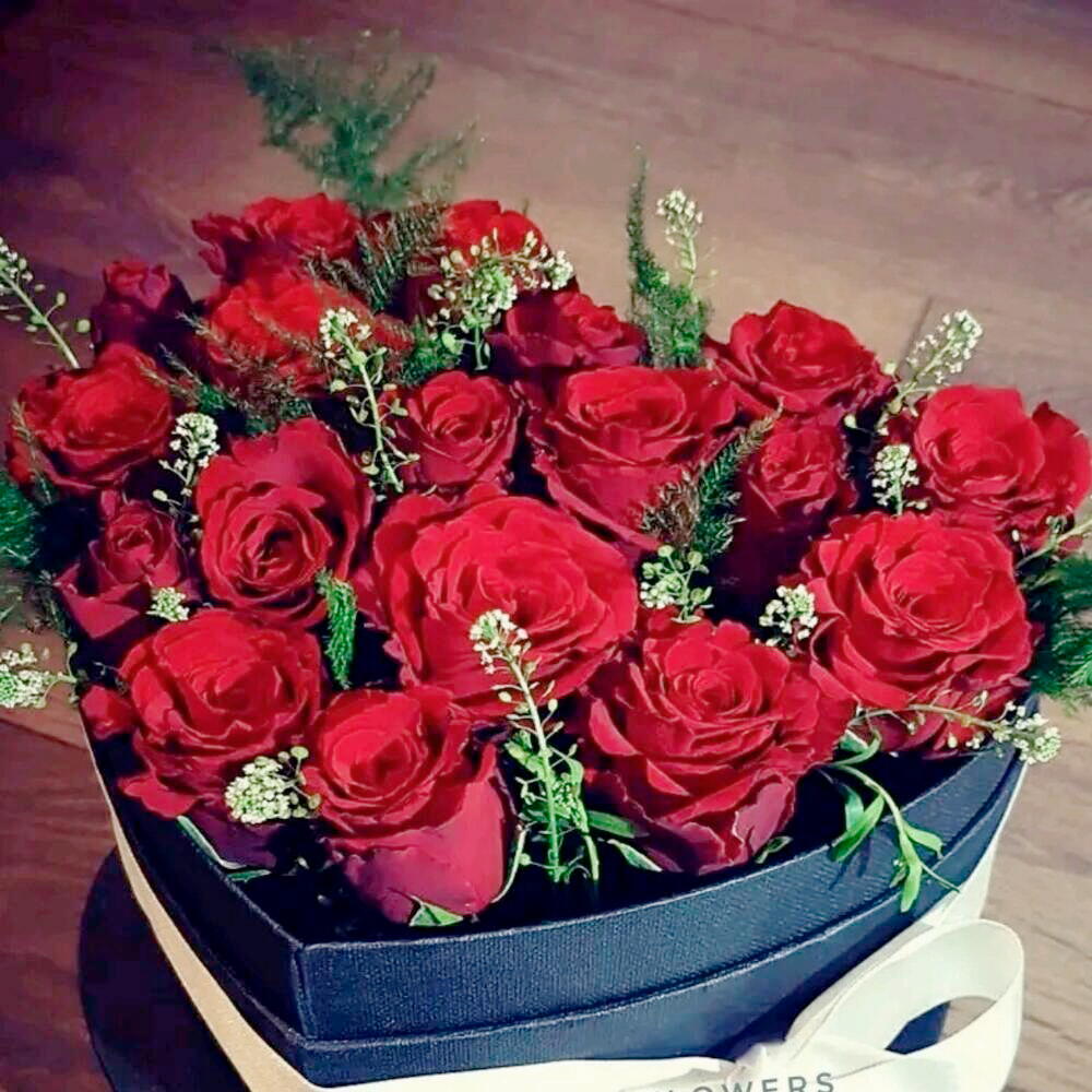 Esta lujosa caja en forma de corazón con rosas rojas clásicas es una expresión atemporal de profundo amor y pasión. De intenso color y elegantemente acentuada con delicadas flores de relleno y follaje, este arreglo floral ofrece una atrevida declaración romántica. Perfecto para San Valentín, aniversarios o cualquier ocasión especial. Para garantizar su frescura, rocíe ligeramente las flores a diario, evite exponer la caja a la luz solar directa o cerca de fuentes de calor y manténgala en un lugar fresco. La espuma floral del interior ayuda a mantener la hidratación; añada un poco de agua cada dos días para que las rosas se mantengan frescas y vibrantes.