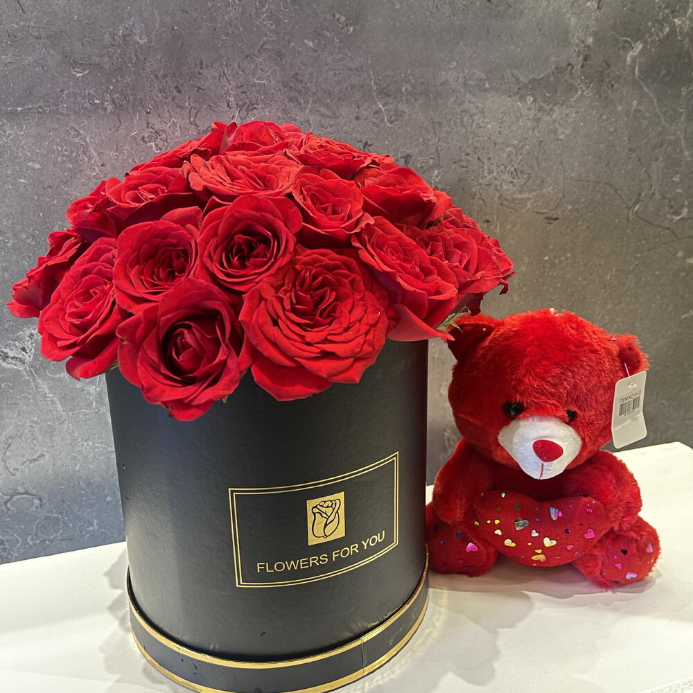 Teddy bear - 1 ud. red roses - 20 ud.