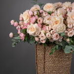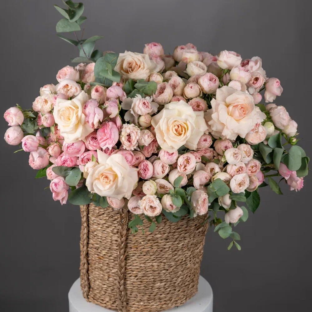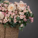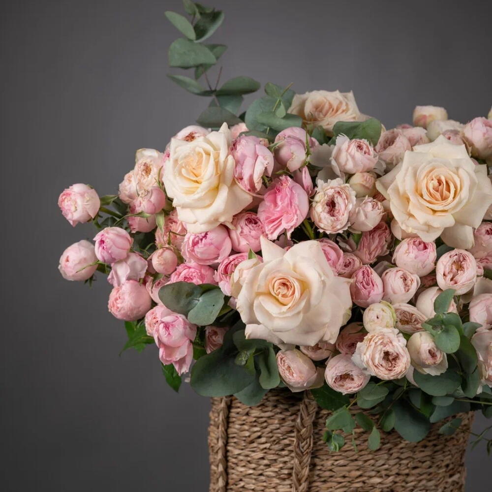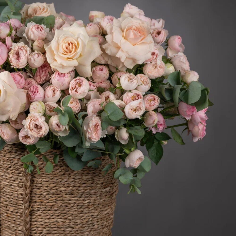 Eucalyptus - 15 ud. Basket - 1 ud. mansfield park rosa - 100 ud. rosa ohara blanca - 11 ud.