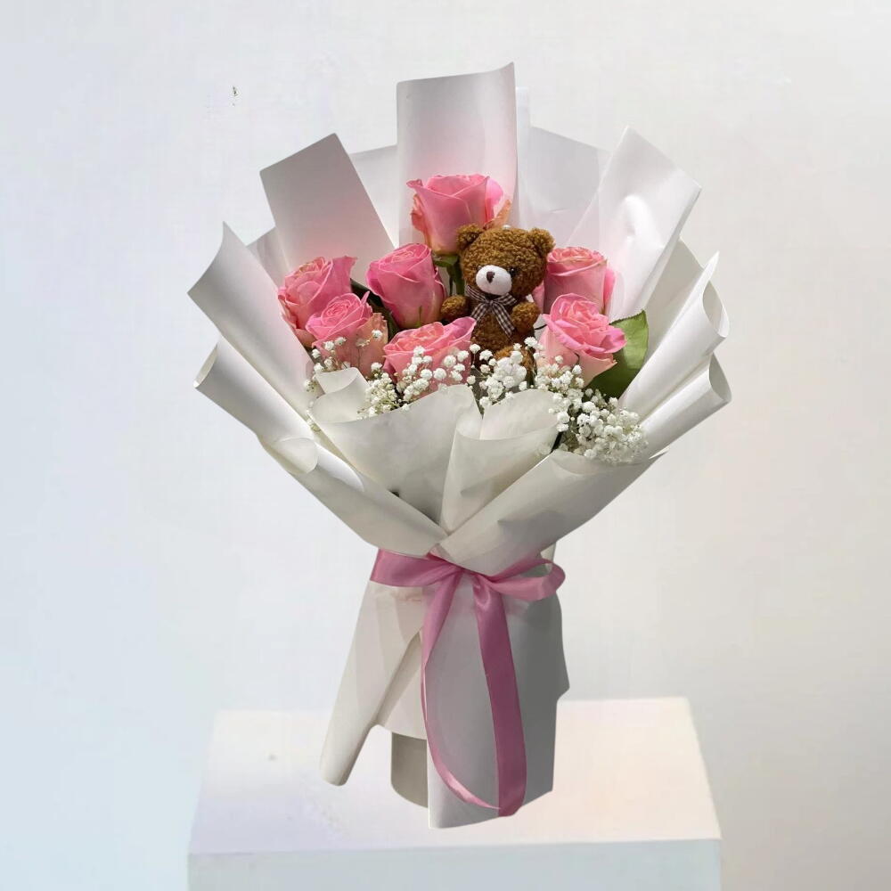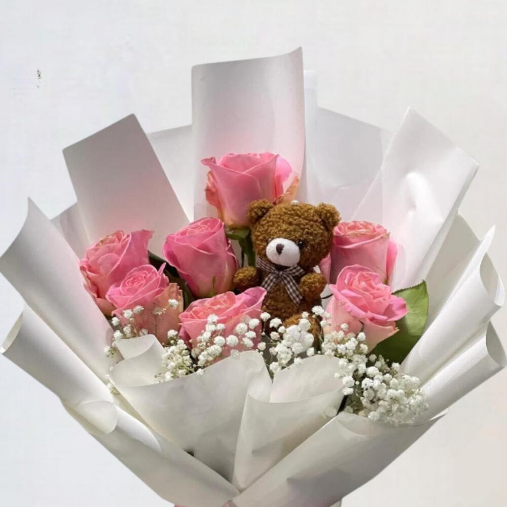 El hermoso ramo de 11 rosas rosadas con un pequeño y adorable osito de peluche encarna la elegancia en su forma más pura. Atado a mano con cuidado, esta impresionante colección de rosas frescas hace que cada ocasión sea inolvidable — desde sinceras confesiones hasta celebraciones de hitos.