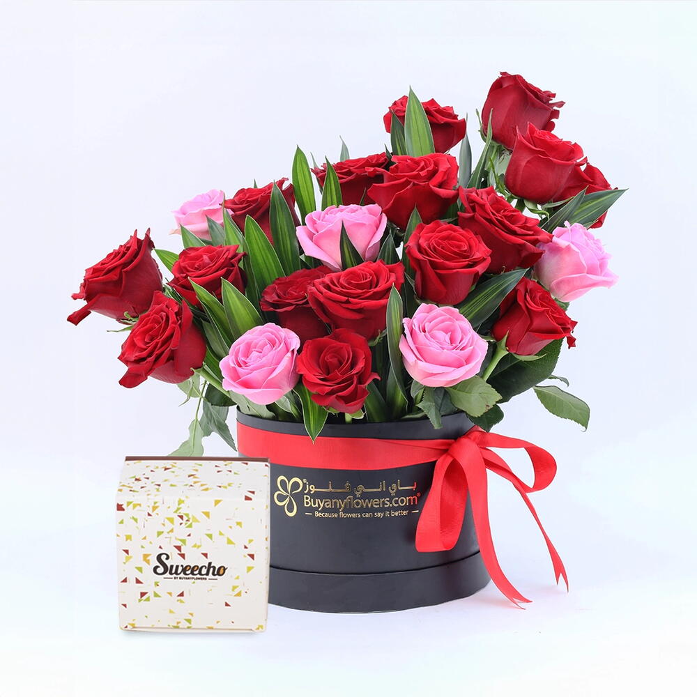 chocolates - 250 ud. red roses - 16 ud. pink roses - 5 ud.