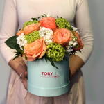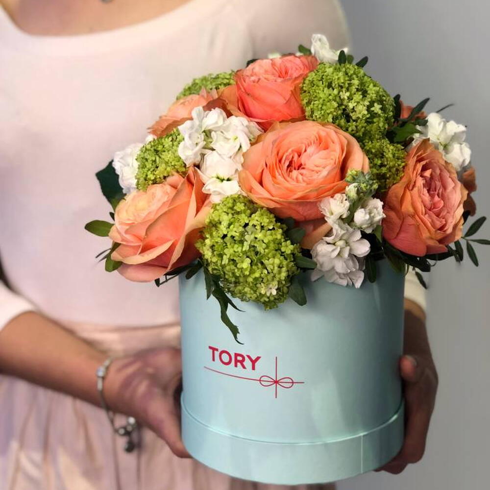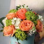 Composición: Mattiola - 7, Rosa David Austin - 7, Viburno - 2, Pistacia - 5, caja - 1 Dimensiones: ANCHO - 20CM; ALTO - 25CM; LARGO - 25CM; (incluido el embalaje) Tamaño: 20 x 25 x 25 cm