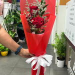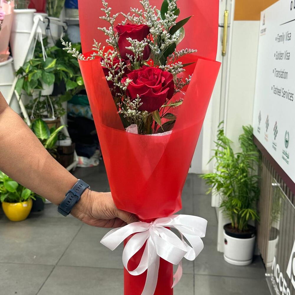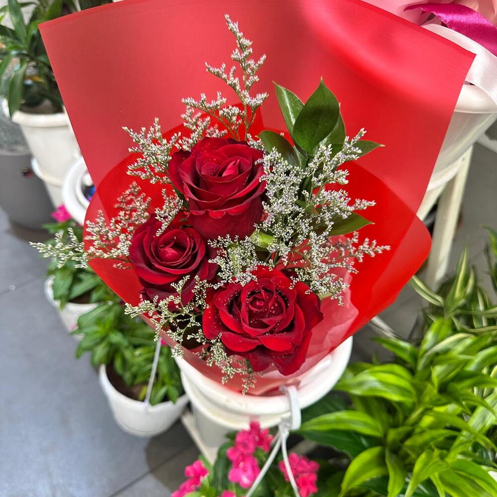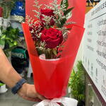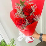 Red rose - 3 ud. Limonium - 1 ud. papel de regalo rojo - 2 ud.